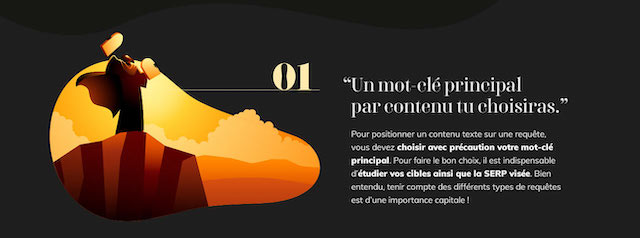 Attention ! Il faut choisir un seul mot clé principal par contenu. Il peut être complété par des mots clés secondaires de longue traine. Le choix de ces mots-clés est décisif. De plus, il vous donne un axe de rédaction.
