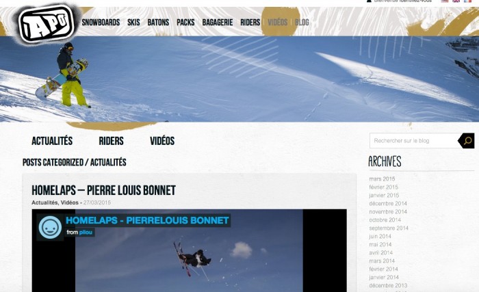 Voici un exemple du site e-commerce de la marque de ski freeride Apo, avec son blog qui colle parfaitement à l’univers des riders son cœur de cible.
