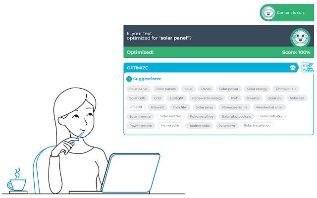 En bref, avec TextOptimizer, vous allez pouvoir optimiser votre contenu existant et ajouter de nouveaux contenus pertinents pour votre site web. Vous pourrez utiliser ce plug-in directement depuis votre site web, mais aussi depuis Google Chrome.
