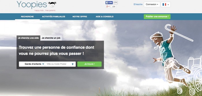 La home page du site Yoopies véhicule un message rassurant, de confiance, des valeurs essentielles à mettre en avant dans un secteur tel que la garde d’enfants.