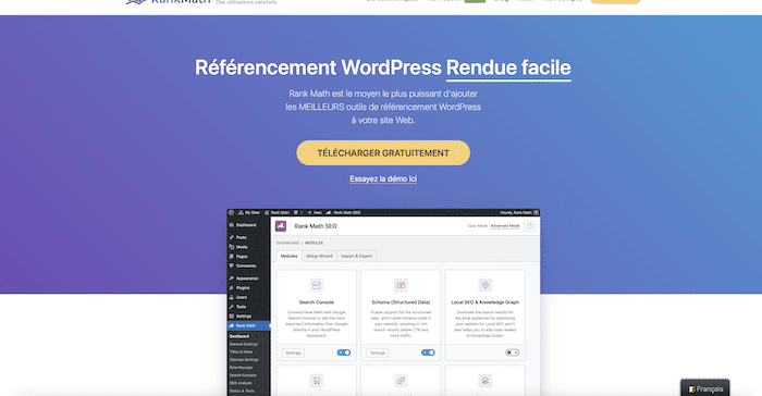 Rank Math est une alternative intéressante pour ceux qui souhaitent effectuer un Audit SEO express, se connecter à Google Search Console, suivre les erreurs 404, générer des rich Snippets et compter le nombre de backlinks.