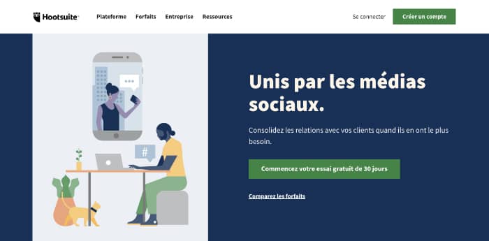 Planifiez, créez et programmez la diffusion de vos contenus sur vos comptes Twitter et autres réseaux sociaux grâce à Hootsuite.