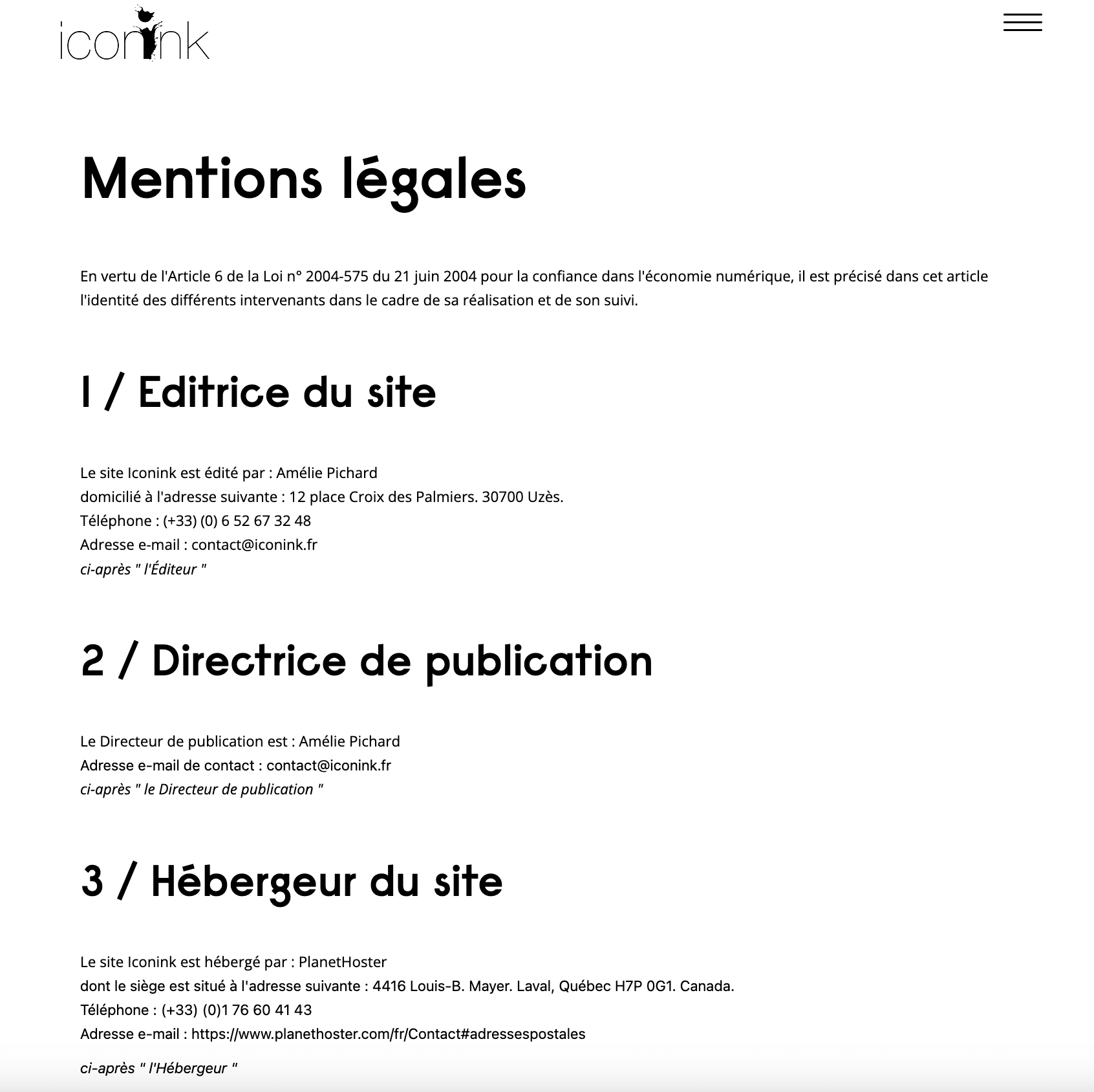 • Afficher vos mentions légales, ainsi que celles de votre hébergeur ;