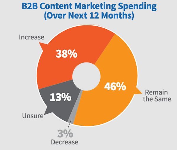 38 % des professionnels interrogés prévoient une augmentation de leur dépenses en content marketing dans un futur proche.