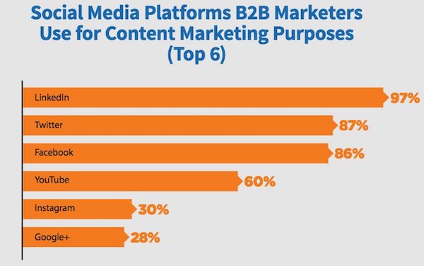 Dans le classement des réseaux sociaux les plus utilisés par les professionnels du B2B pour leur content marketing, Linkedin arrive en tête devant Twitter et Facebook.