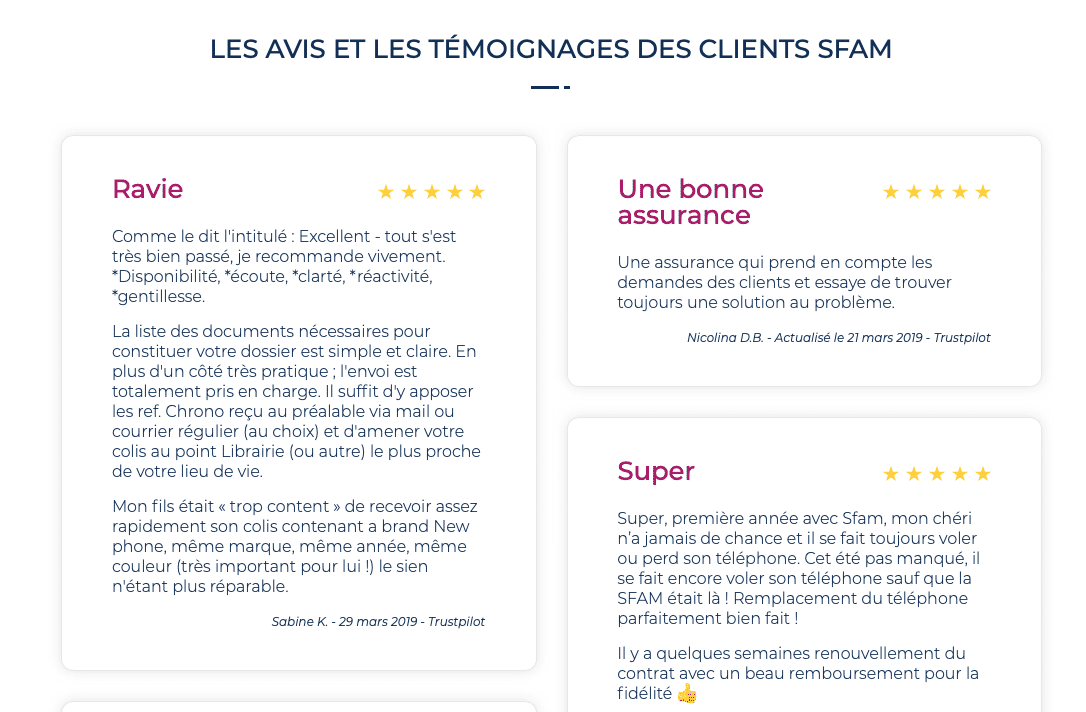 Pour cela, il est intéressant de partager l’expérience de vos clients à travers des témoignages différents (vidéo ou texte) ou des avis qui donnent la preuve que votre assurance est à l’écoute.