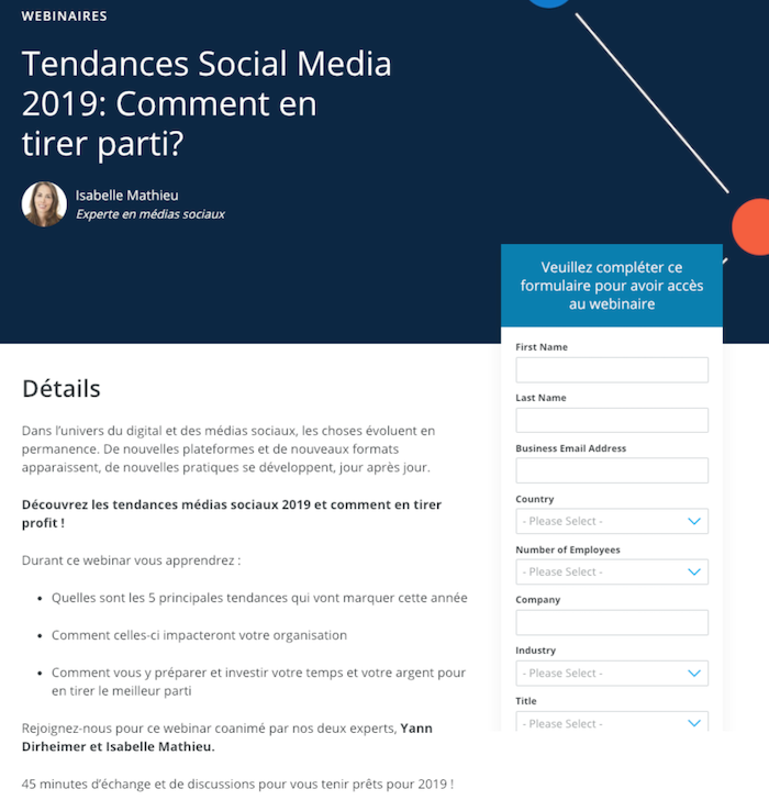 Le webinaire est un format à ne pas négliger : il peut vous aider à générer des leads qualifiés et des ventes. C’est aussi un moyen unique de démontrer votre expertise envers une audience entièrement à votre écoute.