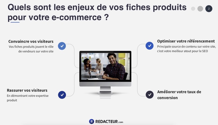 La qualité des contenus que vous publiez ou que vous partagez avec vos prospects et vos clients au cours de vos webinaires va faire la différence sur les résultats obtenus. Profitez de l’expérience et du savoir-faire de professionnels : confiez la rédaction des contenus de votre entreprise à des rédacteurs qualifiés.
