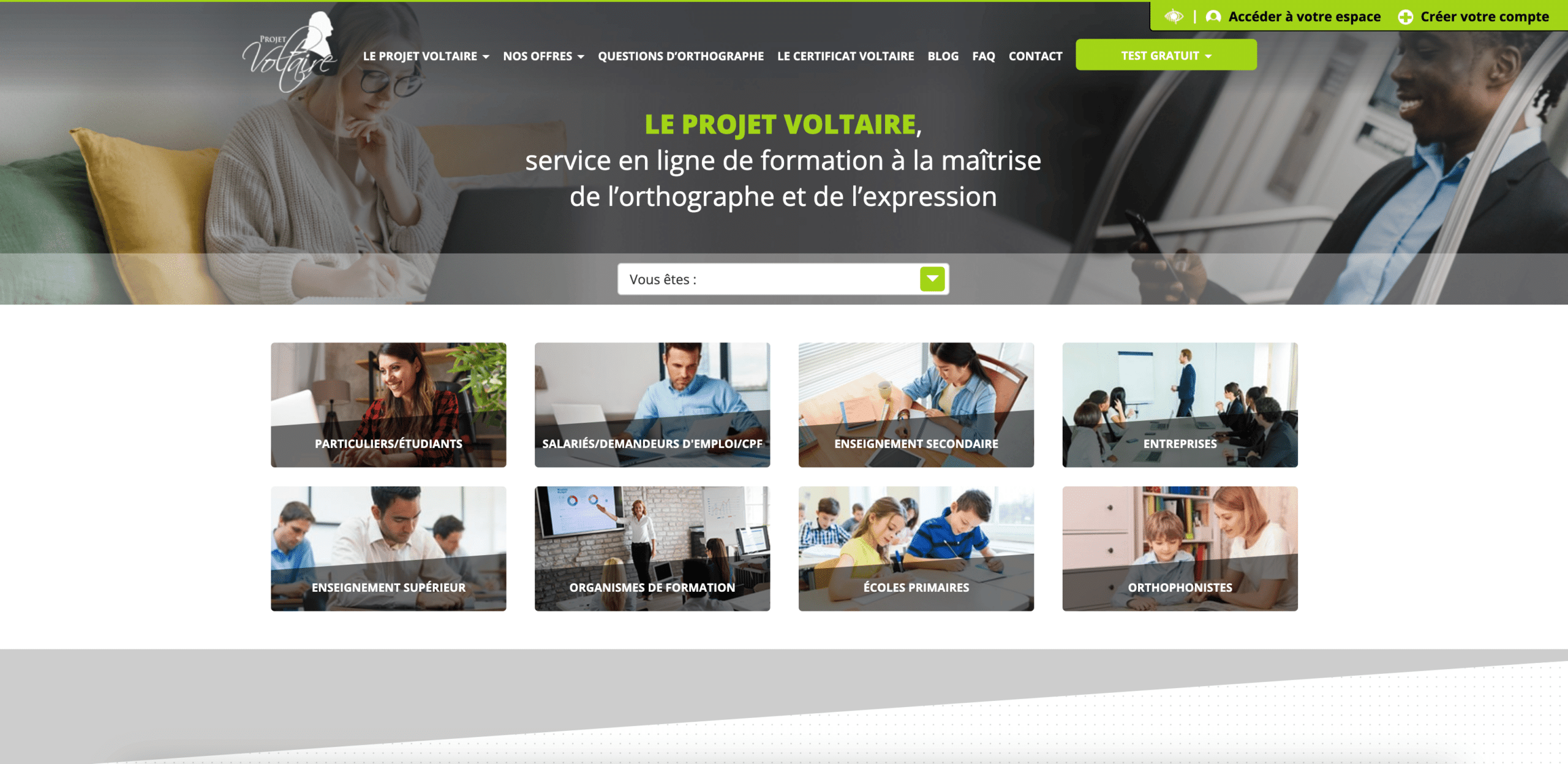Le Projet Voltaire est un outil ambitieux. À l’origine, il s’agit d’un outil de formation pour atteindre différents niveaux d’expertise orthographique. Le score obtenu a d’ailleurs tendance aujourd’hui à valoir pour certification, et figure de plus en plus souvent sur les C.V. des correcteurs-relecteurs de métier.