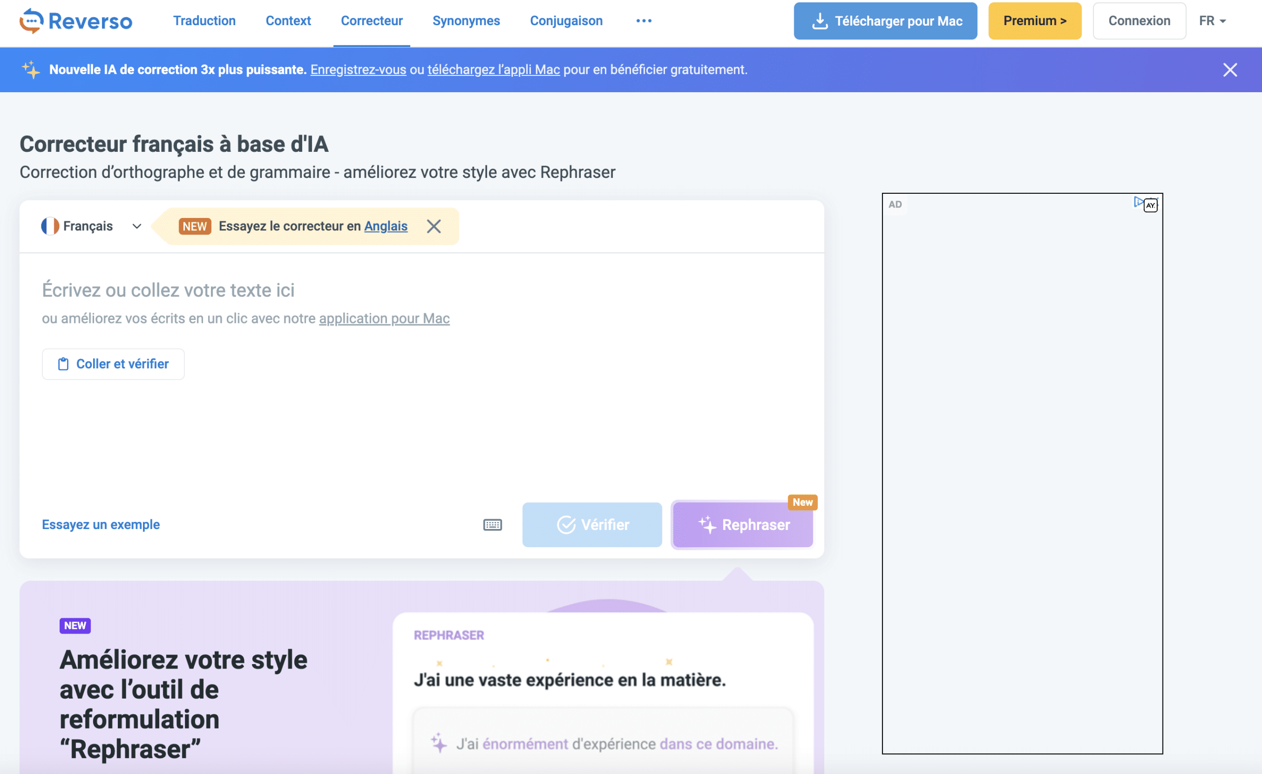Reverso.net peut être utilisé comme correcteur d’orthographe et pas seulement comme outil de traduction. Il est très performant au niveau de l’orthographe pure. Il est pratique et corrige automatiquement les fautes détectées.