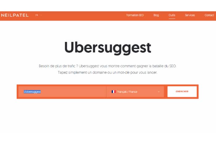 Le célèbre générateur de mots-clés ne se présente plus. Il vous suffit d’entrer un mot-clé dans la barre de recherche d’Ubersuggest pour trouver les bons mots pour votre SEO. C’est simple et efficace !