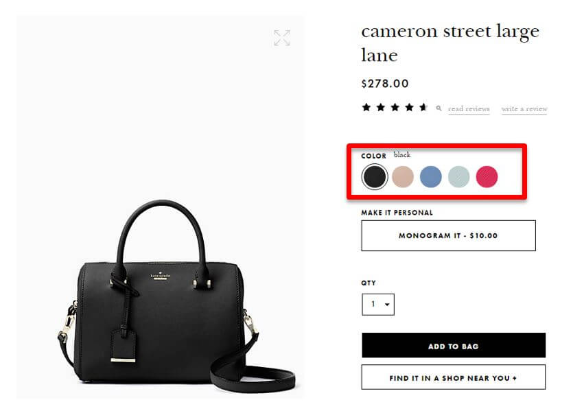 Aussi, pour éviter de perdre des clics pour cette raison, l’idée est d’utiliser des échantillons de couleurs sur les pages produits. L’acheteur peut ainsi librement choisir une couleur mais une seule URL existe.