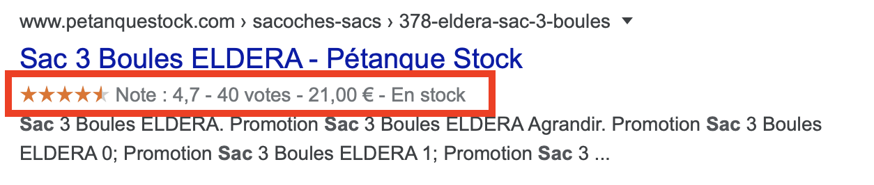 Dans les SERP, un site e-commerce a la possibilité d’utiliser les « rich snippets » pour fournir davantage de données aux internautes.