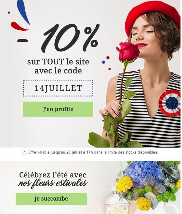 Un email promotionnel doit être construit sur une démarche marketing cohérente et claire. Il peut être envoyé à vos prospects pour une occasion spéciale et récurrente : anniversaire de la marque, fidélité du client à celle-ci…
