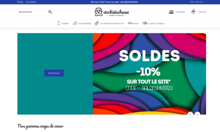 Archiduchesse, boutique en ligne de chaussettes, est parfaitement parvenu à le faire. La navigation sur le site est fluide et les visiteurs peuvent ainsi trouver rapidement ce qu’ils cherchent.