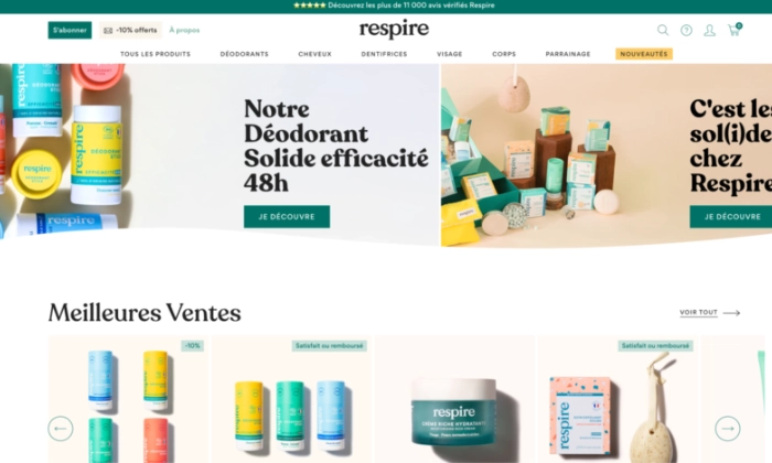 La marque Respire, spécialisée dans les soins naturels d’hygiène et de beauté, est très souvent citée pour son côté marketing 2.0. En effet, la boutique en ligne a déployé une stratégie redoutable de marketing de croissance, qui lui a permis de connaître une progression impressionnante.