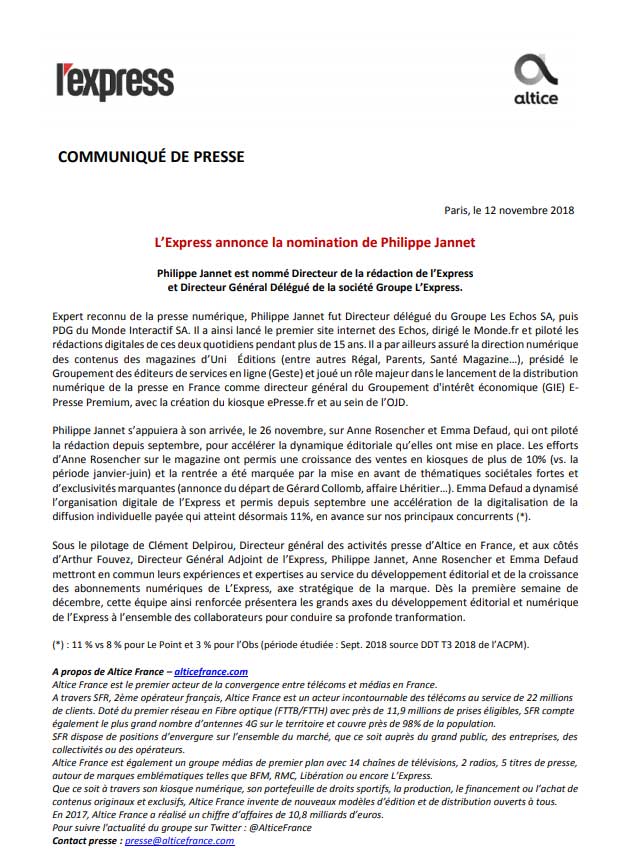 3. Le communiqué de presse qui annonce une nomination