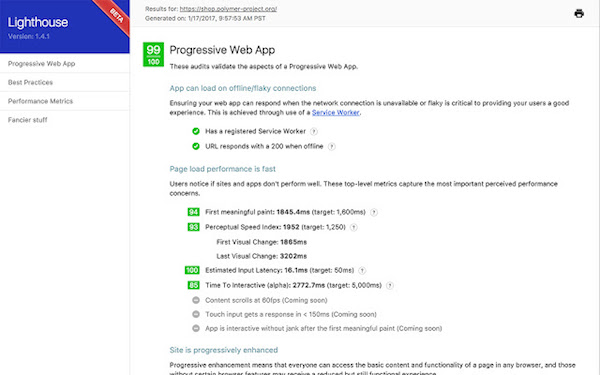 Lighthouse peut aussi fournir un rapport pour les applications web.