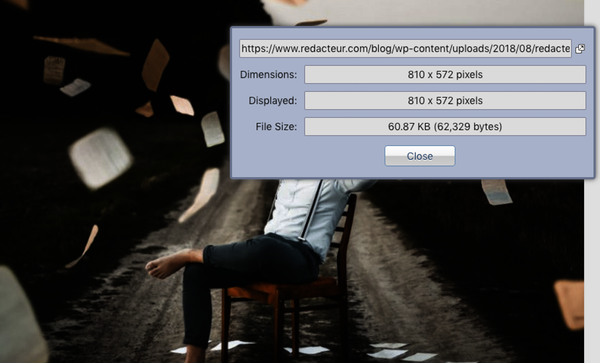 Avec l’extension Chrome Image Size Info, faites un clique droit sur une image pour l’analyser et obtenir :