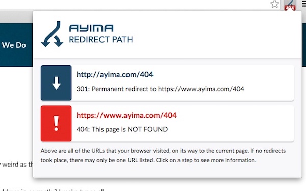 Redirect Path est une extension gratuite puissante pour analyser les redirections d’un site web puisqu’elle vous signale les codes HTTP 301, 302, 404 et 500.