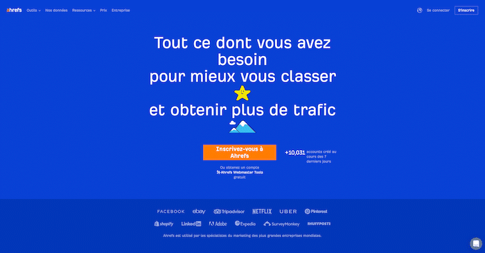 Autre grand nom du référencement Web, Ahrefs vous aidera à choisir des mots-clés performants pour augmenter votre taux de conversion.