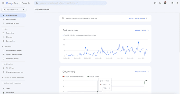 La Search Console vous fournit alors tous les rapports d’exploration, ainsi que des informations importantes pour améliorer votre référencement naturel.