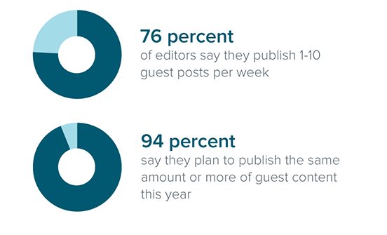 - 76 % des responsables éditoriaux déclarent qu’ils publient 1 à 10 guest posts par semaine ;