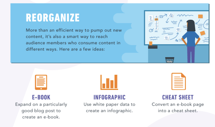 - Transformez-les dans un autre format : en infographie, en vidéo ou en ebook. Vous pensez que cela est contraire à l’objectif d’originalité ? Faux ! Vous donnez une seconde vie à vos articles qui ont suscité l’intérêt en les proposant dans un format qui intéressera une autre partie de votre cible.