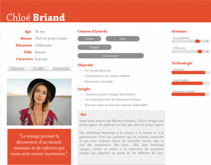 Dans la création du persona, vous devez imaginer une situation géographique, préciser son âge, son niveau d’études, son métier ou encore sa situation familiale. Le tout est de choisir des éléments plausibles, dans lesquels la cible peut facilement se retrouver.