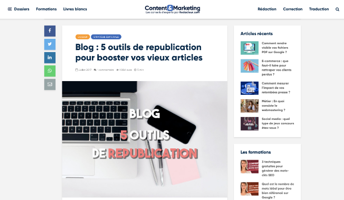 À lire aussi : Blog : 4 outils de republication pour booster vos vieux articles
