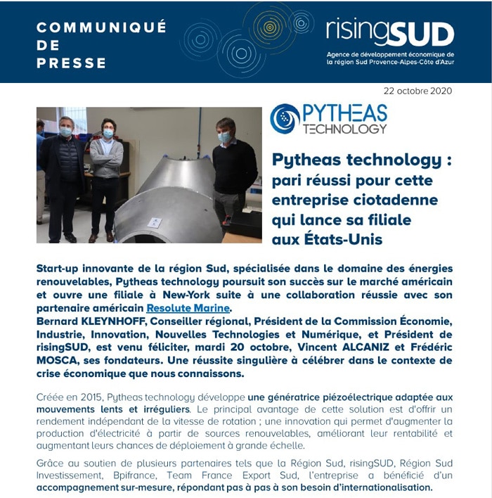 3. L’article de presse de Pytheas pour le lancement de son entreprise