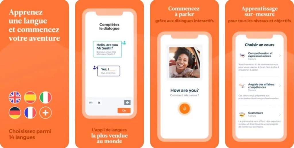 Même si leur contenu n’est pas aussi riche et précis que d’autres méthodes présentées un peu plus haut dans cet article, ces applications restent aujourd’hui le moyen le plus simple pour, à minima, apprendre les bases de l’anglais.