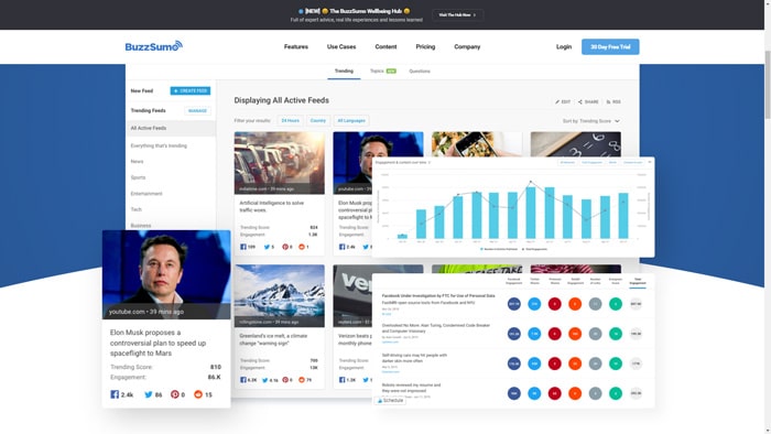 BuzzSumo est un outil d’analyse qui va vous permettre d’identifier les sujets tendance, de trouver des influenceurs et de suivre votre notoriété en ligne ainsi que celle de vos concurrents.