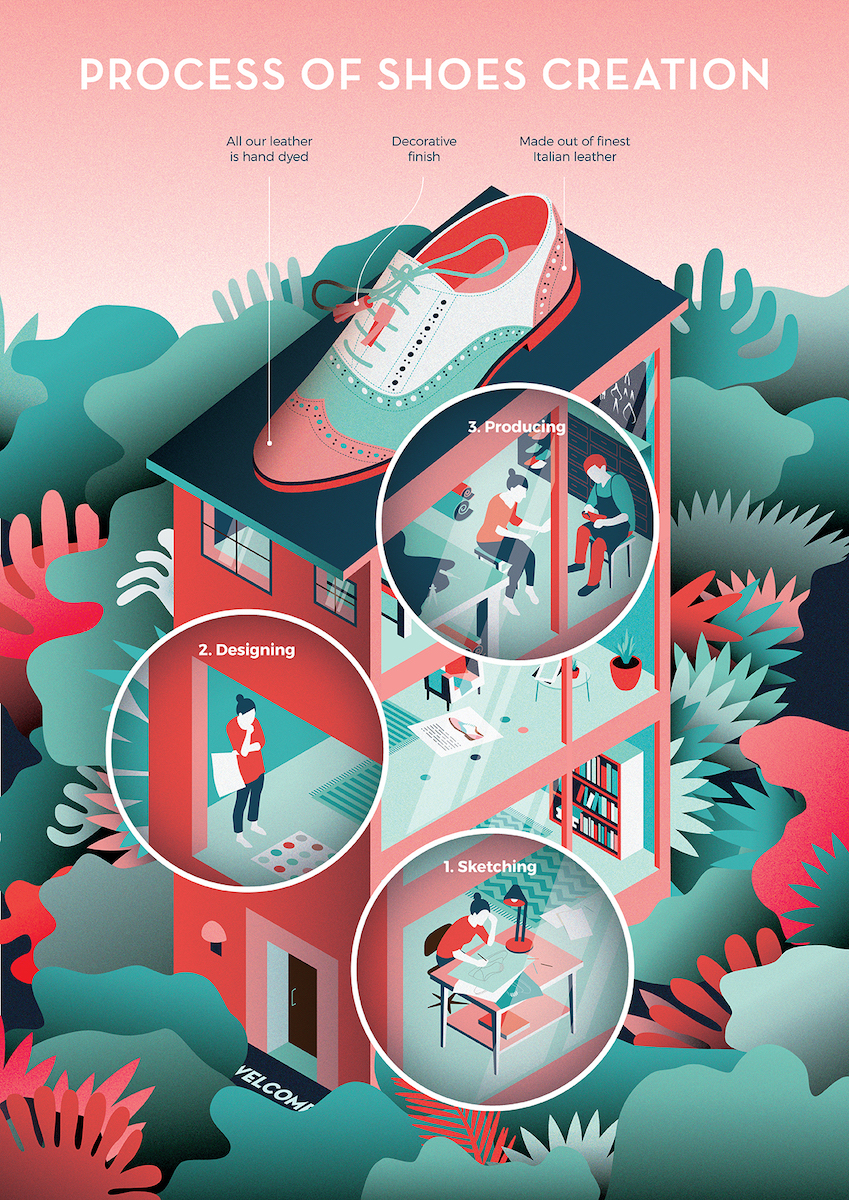 A vous de faire marcher votre imagination tout en gardant en tête l’histoire de l’infographie. Listez également les illustrations que vous souhaitez intégrer à votre contenu. Elles vous aideront à construire l’infographie.