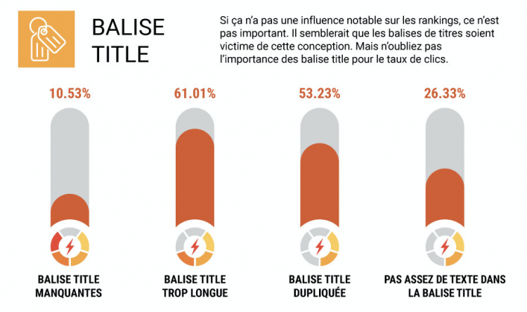 De nombreux porteurs de projet dans le web semblent l’avoir oublié puisque des balises « Title » manquantes sont repérées sur 10 % des sites alors des balises « H1 » manquent sur près des deux tiers des sites Internet.