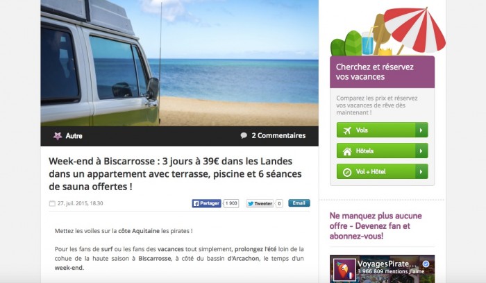 Grâce à la possibilité de commenter chaque deals, Voyages Pirates permet à ses utilisateurs de créer du contenu unique sur son site.