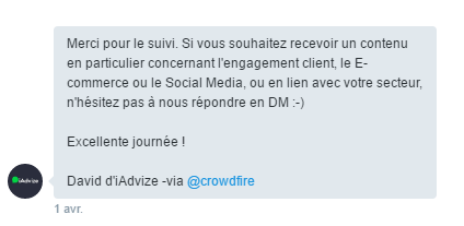 Le message automatique est à bannir. Il envoie une image très négative, loin de celle d’une entreprise humaine. Ce type de message montre que vous n’êtes pas proche de votre audience mais aussi que vous ne souhaitez pas l’être.