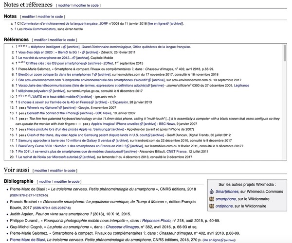 Vous pouvez également trouver des études depuis Wikipédia depuis la section « Sources » ou “Notes et références”. Ces dernières sont fiables puisqu’elles sont vérifiées par la communauté.