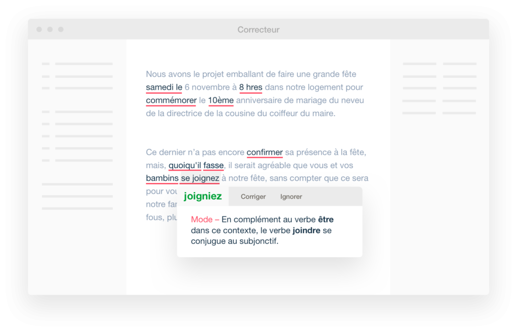 Plusieurs outils sont disponibles en ligne ou sous la forme d’un logiciel de correction, afin d’aider les utilisateurs à corriger leurs fautes d’orthographe, de grammaire ainsi que de conjugaison.